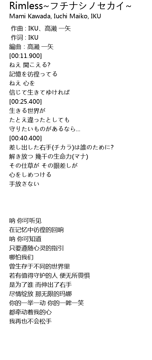 | [00:00.00] | 作曲 : IKU、高濑 一矢 |