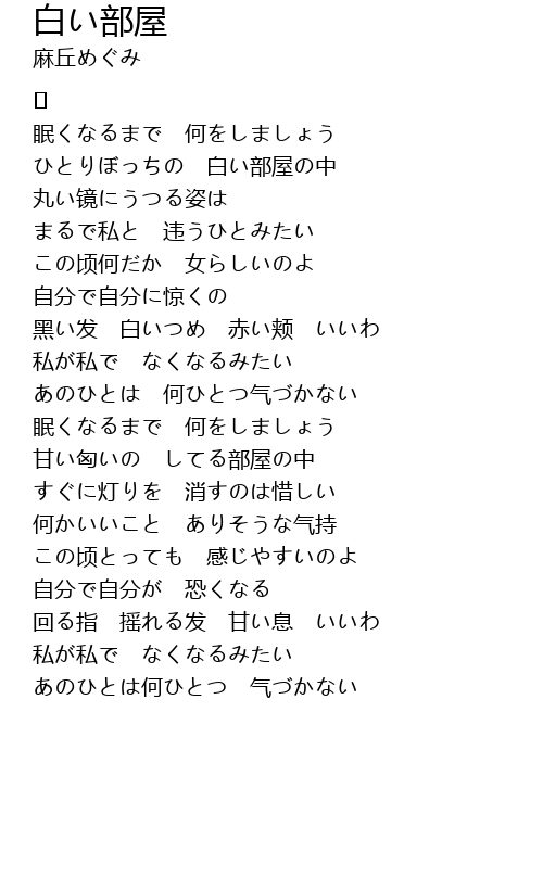 ひとりぼっちの 白い部屋の中 |