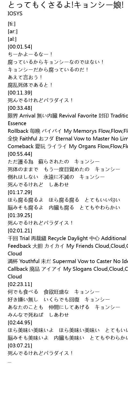 | [00:06.03] | キョンシーだから腐っているのだ! |