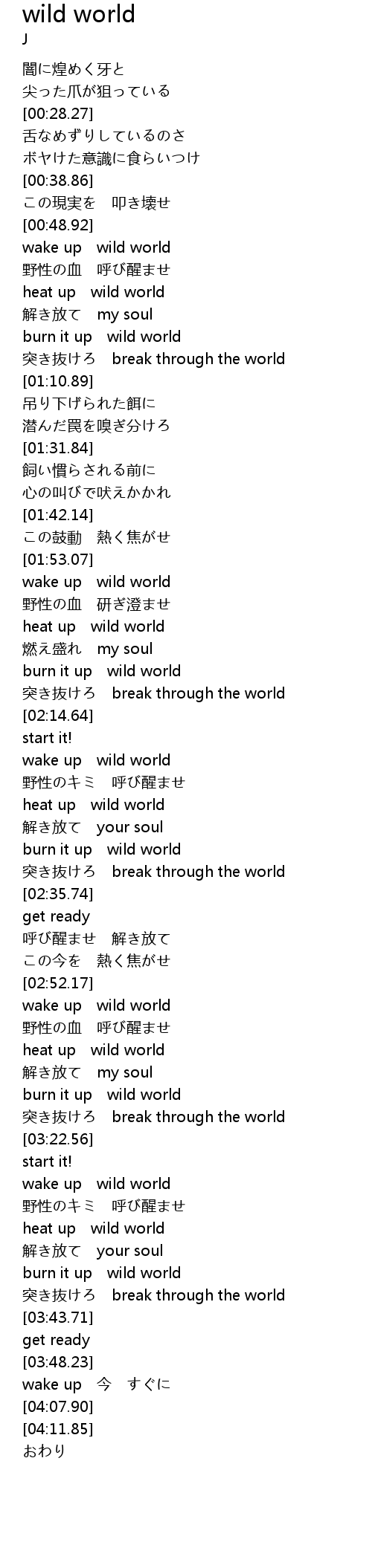 | [02:28.91] | burn it up wild world |