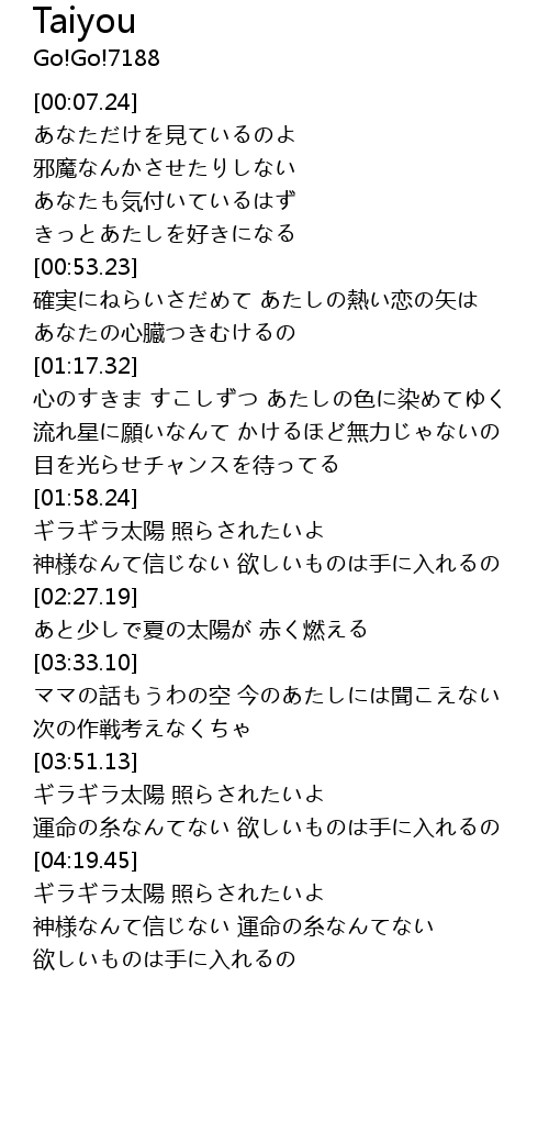 | [03:56.49] | ギラギラ太陽 照らされたいよ |