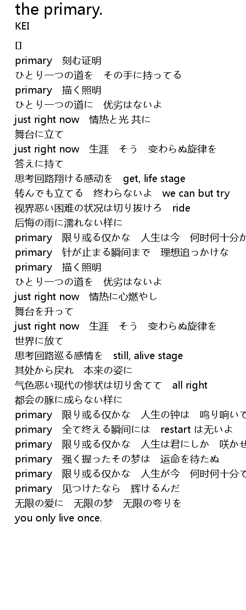| primary 限り或る仅かな 人生の钟は 鸣り响いてるんだ | |