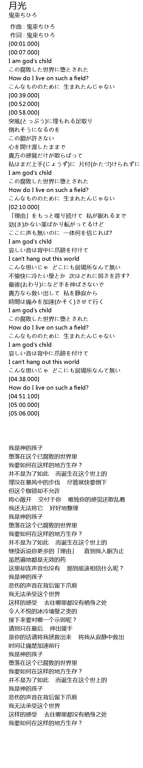 | [00:00.00] | 作曲 : 鬼束ちひろ |
