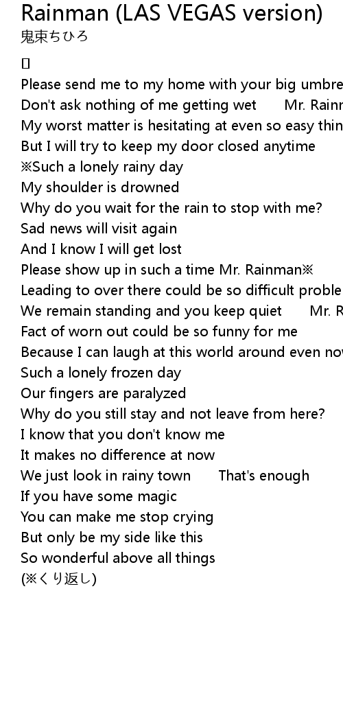 | Don't ask nothing of me getting wet Mr. Rainman | |