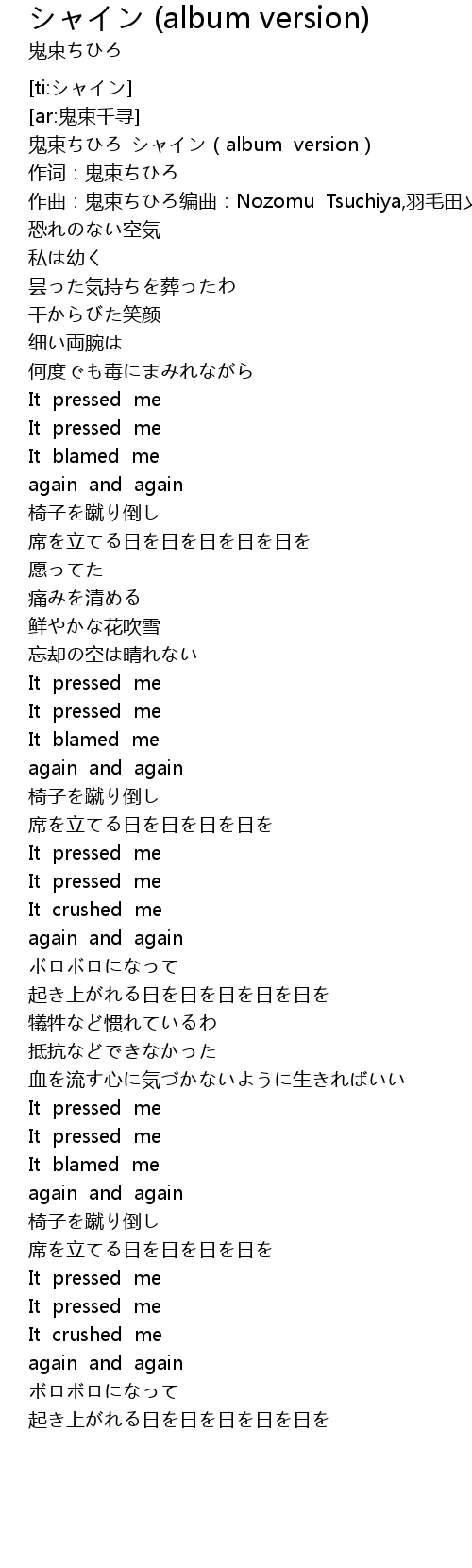 | [00:01.711] | 鬼束ちひろ-シャイン(album version) |