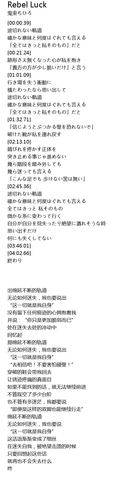 | [03:04.05] | 途切れない軌道 |