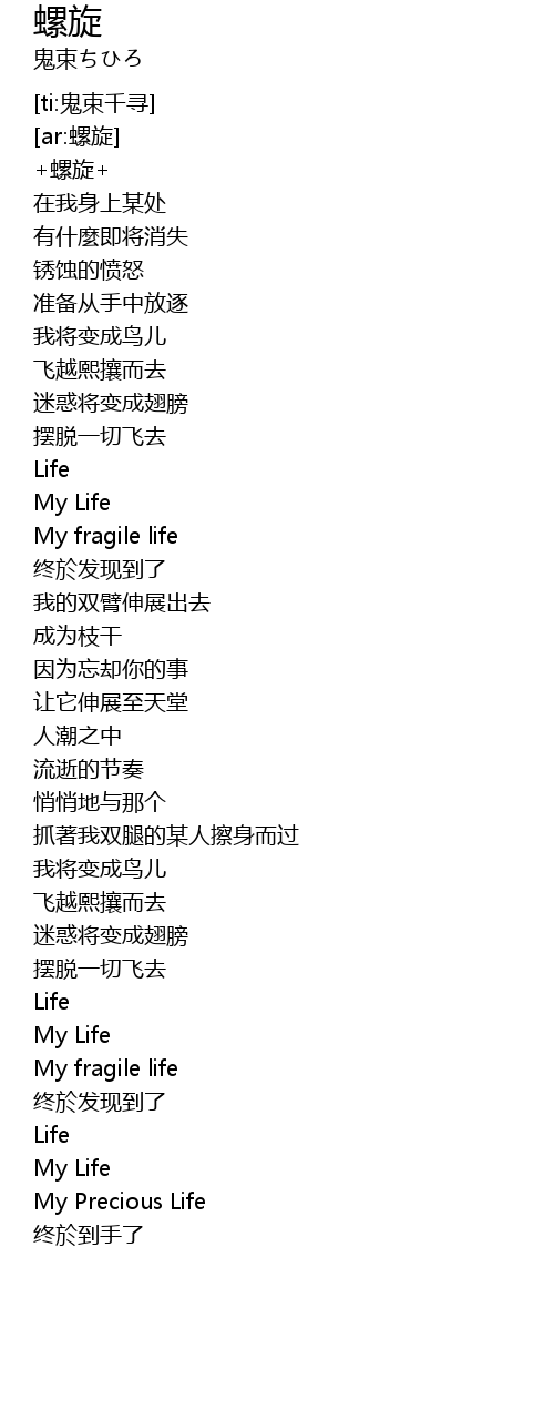 | [00:50.844] | wǒ jiāng biàn chéng niǎo ér |