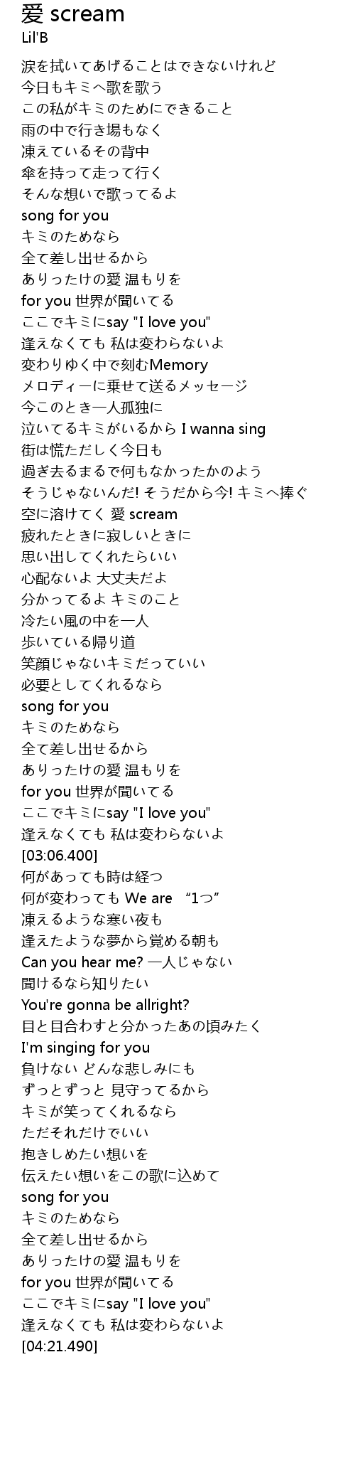 | [04:10.380] | ここでキミにsay "I love you" |