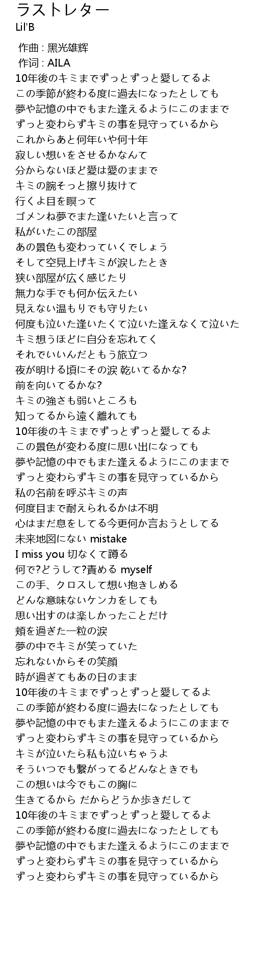 | [01:39.971] | 10年後のキミまでずっとずっと愛してるよ |