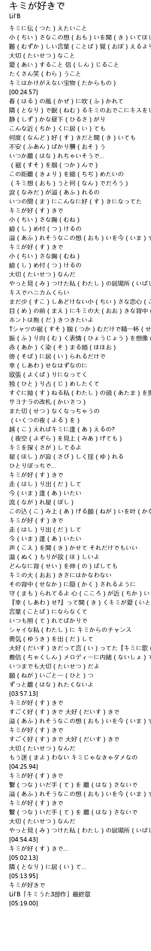 | [04:13.21] | すごく好(す)きで 大好(だいす)きで |