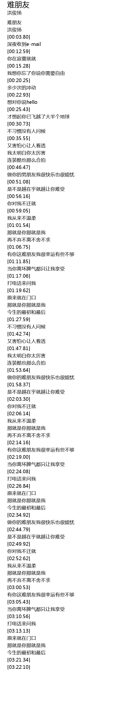 | [03:01.15] | you ni zhe nan peng you wo hen xing yun you xie bu gou |