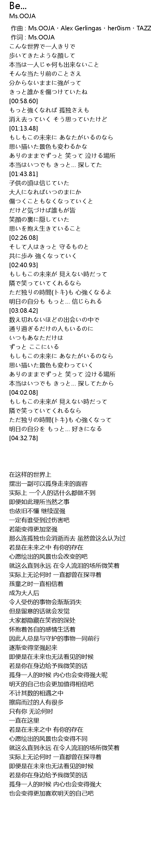 | [00:01.00] | 作词 : Ms.OOJA |