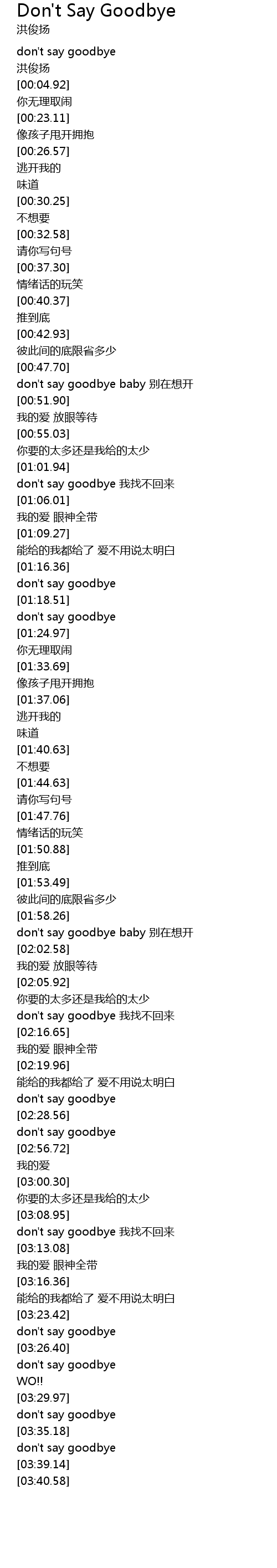 | [03:09.65] | don't say goodbye 我找不回来 |