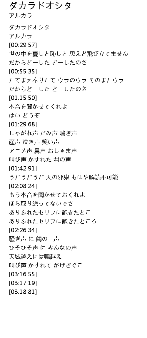 ダカラドオシタ  Lyrics
