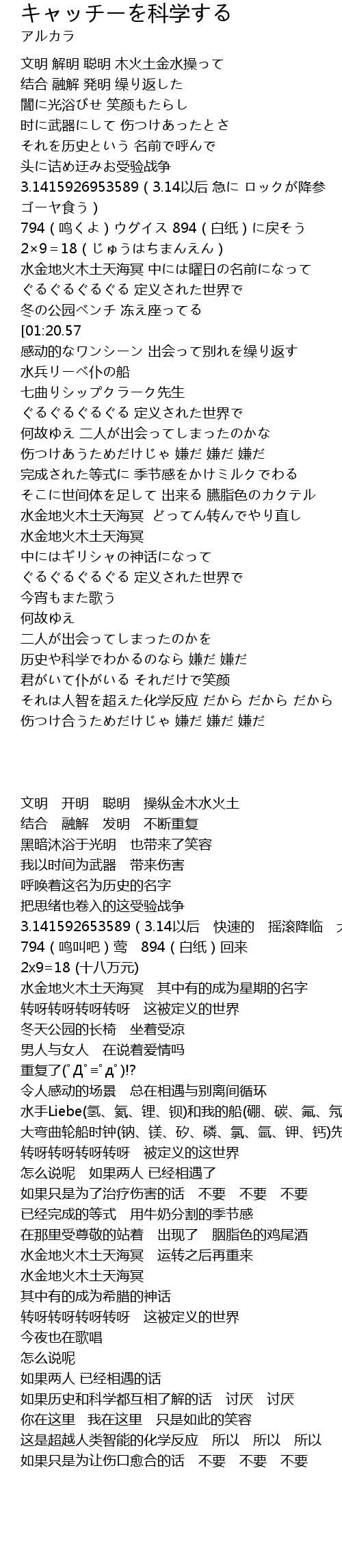 | Song | キャッチーを科学する |