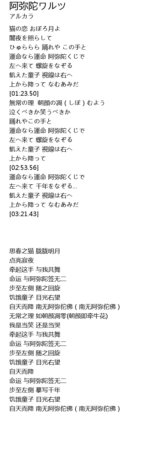 | [02:32.00] | yùn mìng yùn mìng ā mí tuó |