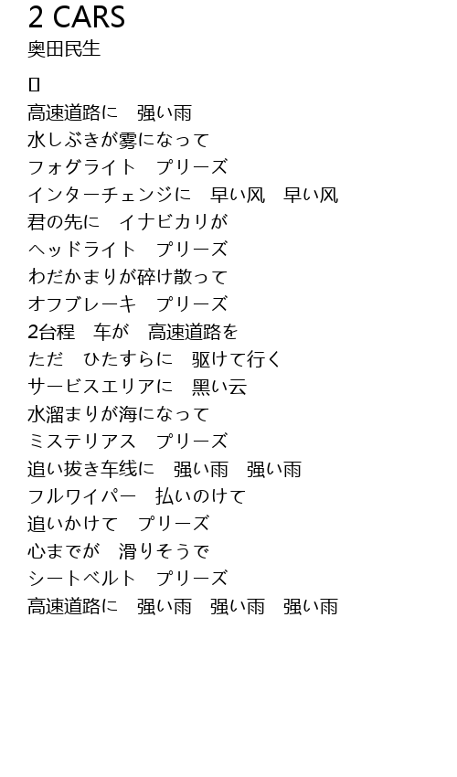 | Song | 2 CARS |