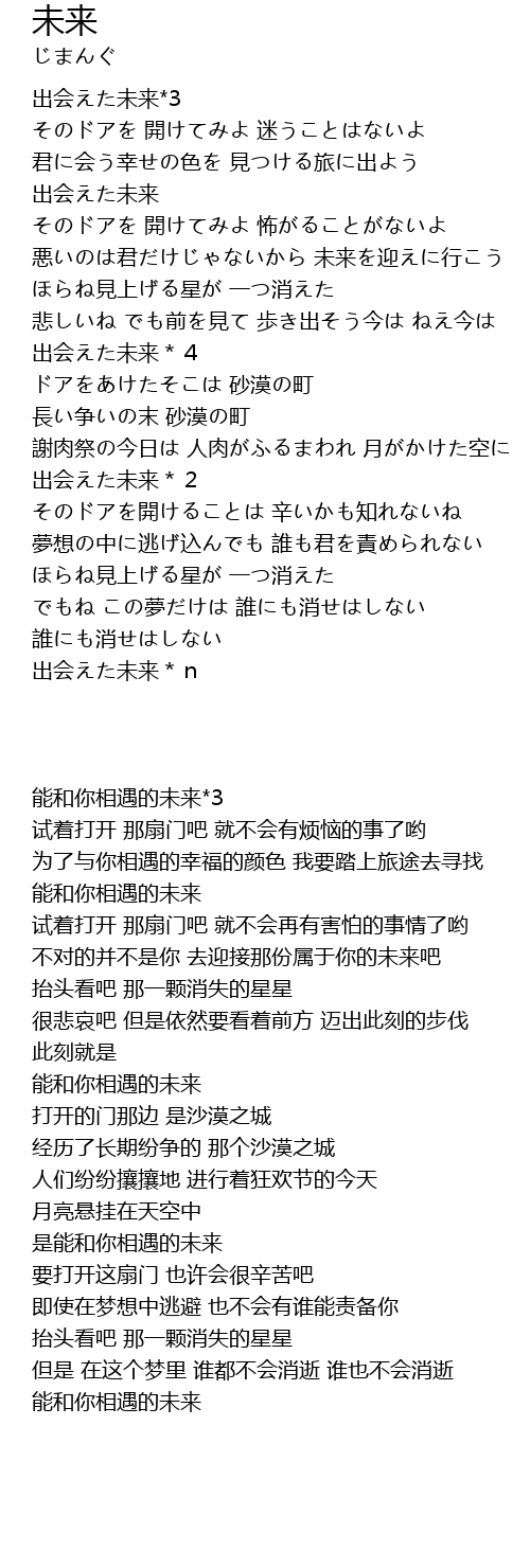 | [00:37.800] | そのドアを 開けてみよ 迷うことはないよ |