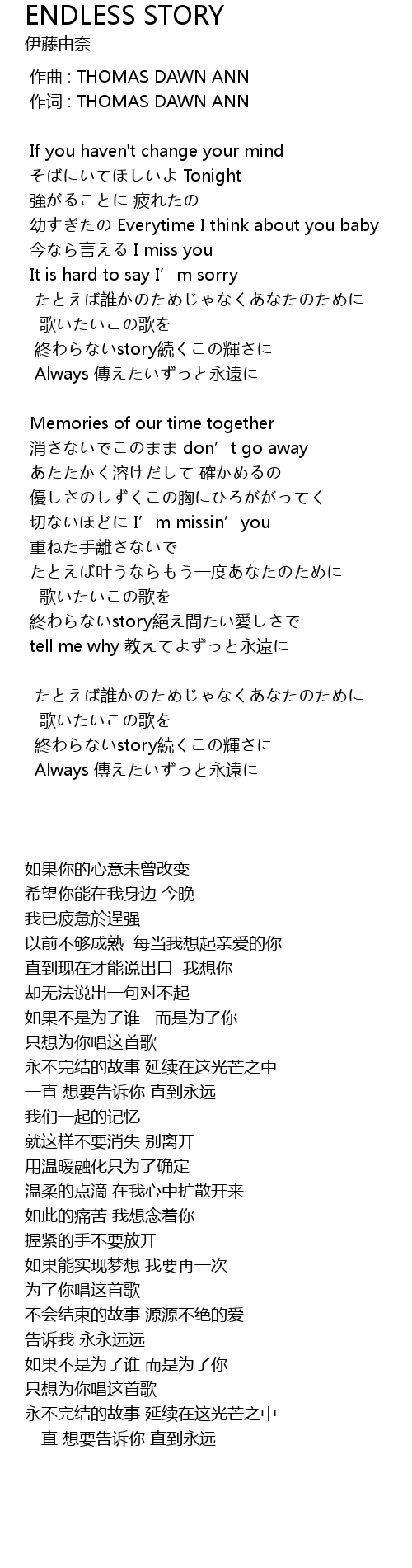 | [00:01.00] | 作词 : THOMAS DAWN ANN |