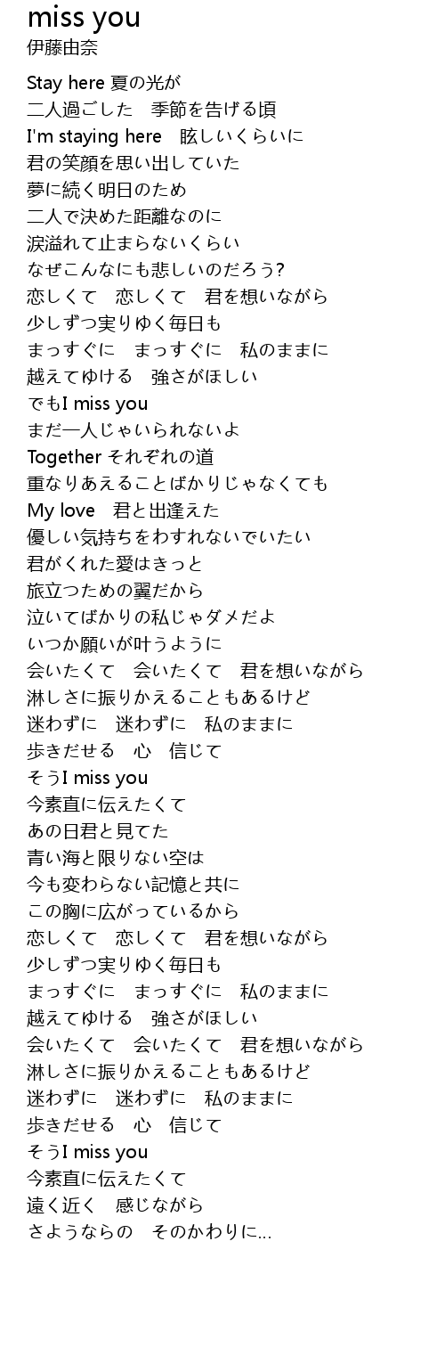 | [03:50.510] | 会いたくて 会いたくて 君を想いながら |