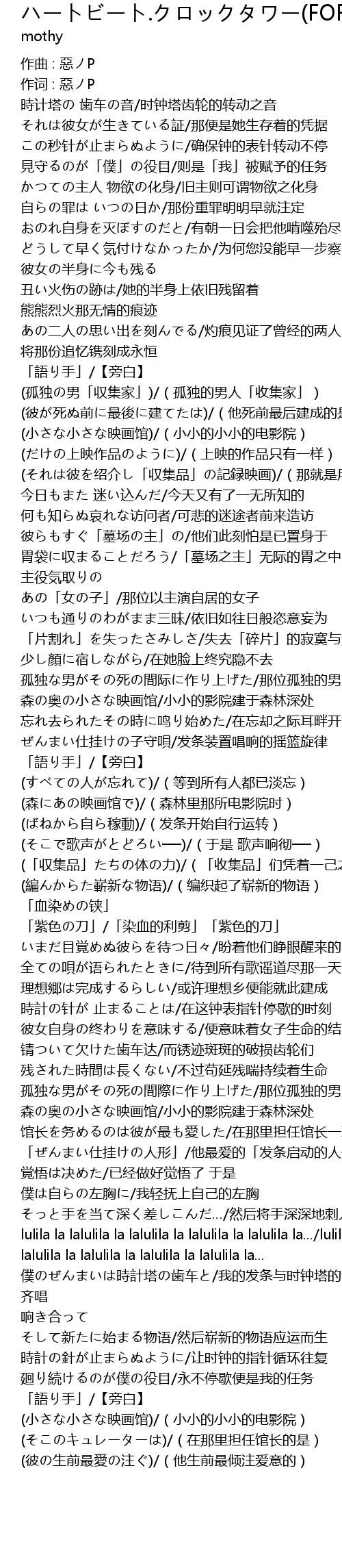 | [03:32.62] | 僕のぜんまいは時計塔の歯车と/我的发条与时钟塔的齿轮 齐唱 |