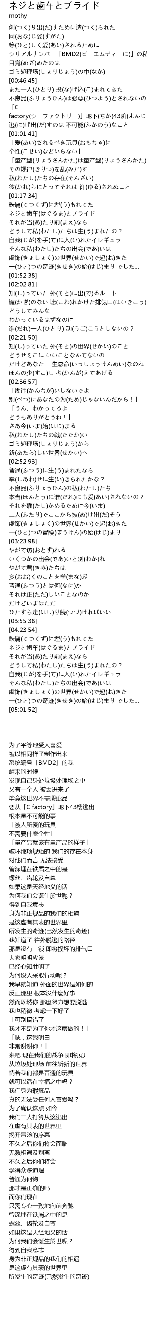 | [01:22.35] | ネジと歯车(はぐるま)とプライド |