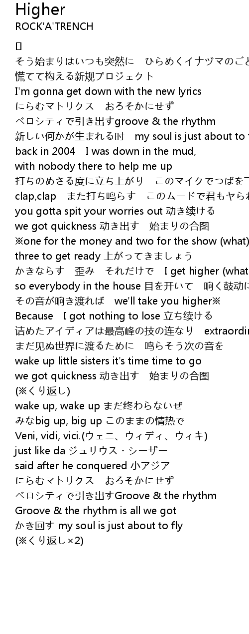 | かきならす 歪み それだけで I get higher (what,what) | |