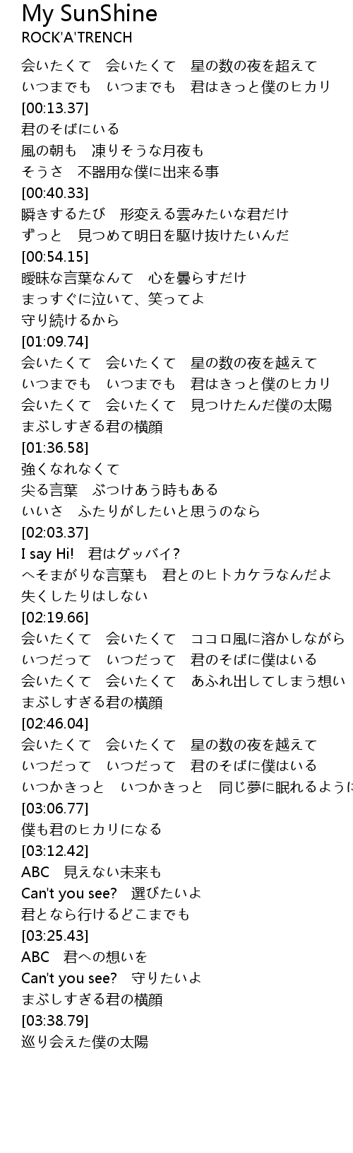 | [02:04.55] | I say Hi! 君はグッバイ? |