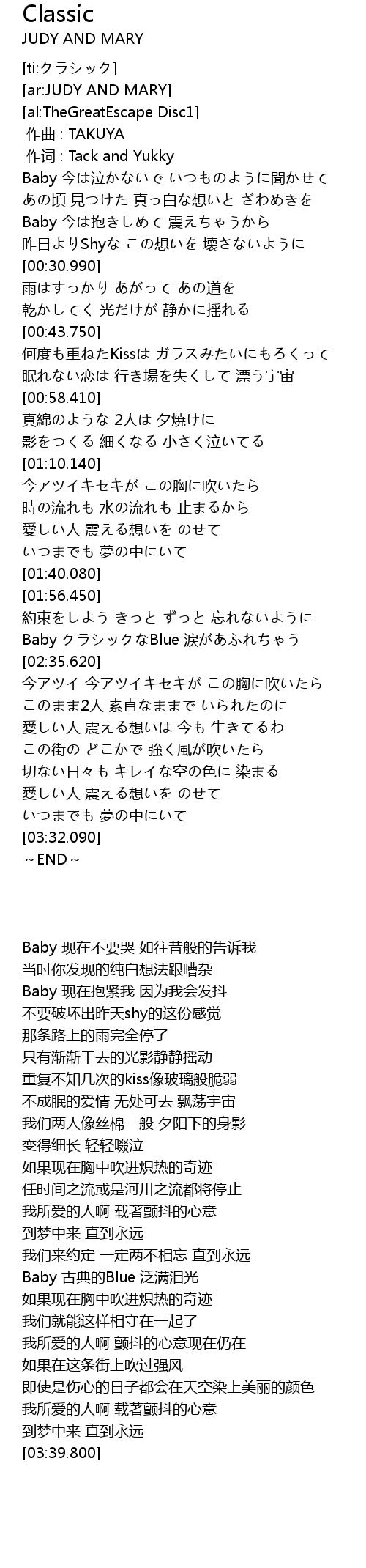 | [02:20.800] | Baby クラシックなBlue 涙があふれちゃう |