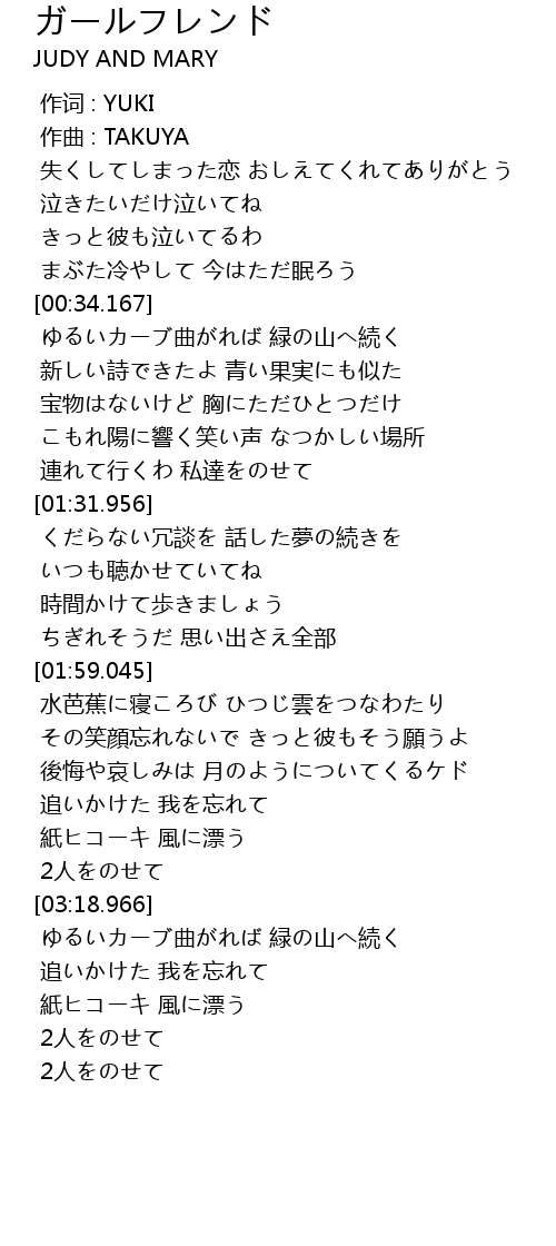 | [03:37.069] | 紙ヒコーキ 風に漂う |