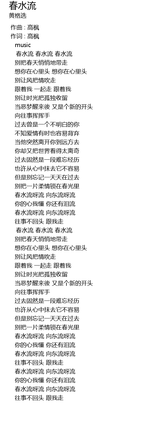 | [02:35.350] | chūn shuǐ liú chūn shuǐ liú chūn shuǐ liú |