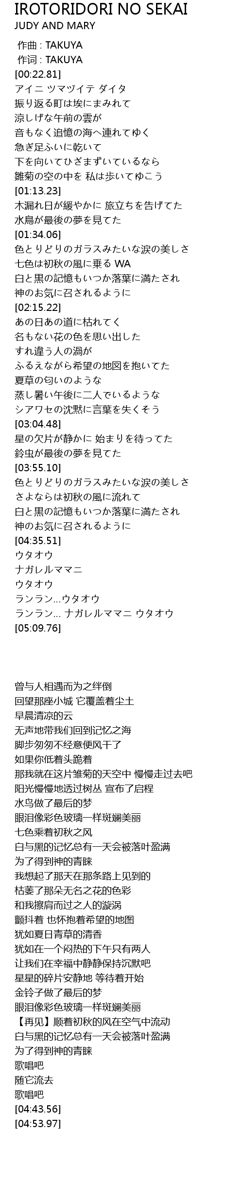 | [04:16.08] | 白と黒の記憶もいつか落葉に満たされ |