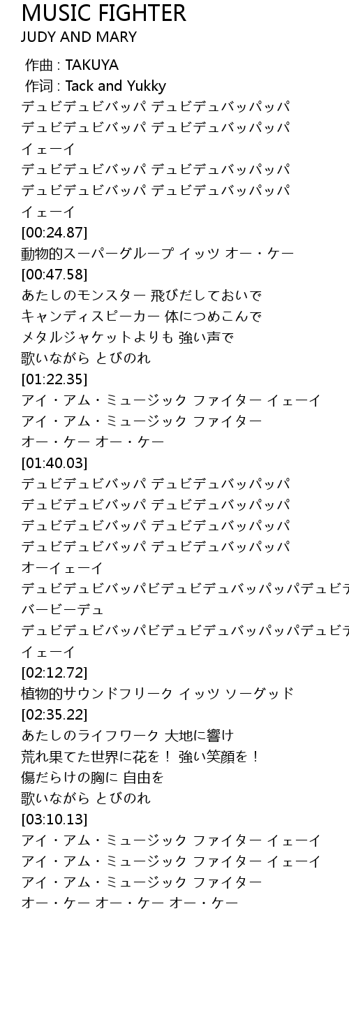 | [03:10.25] | アイ・アム・ミュージック ファイター イェーイ |