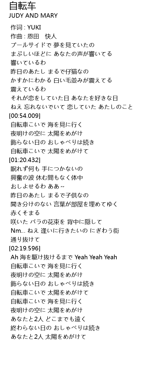 | [01:04.807] | 自転車こいで 海を見に行く |