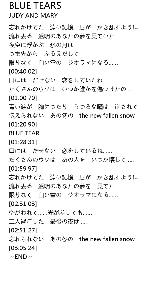 | [01:12.13] | 伝えられない あの冬の the new fallen snow |