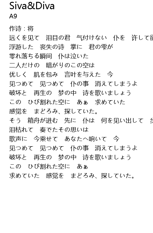 | 浮游した 丧失の诗 掌に 君の雫が | |