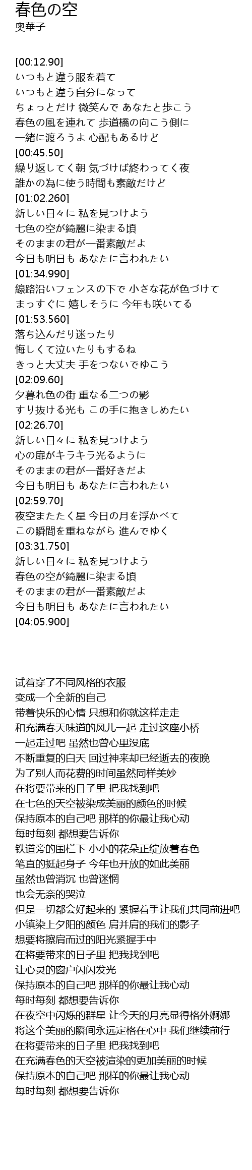 | [03:40.900] | 春色の空が綺麗に染まる頃 |
