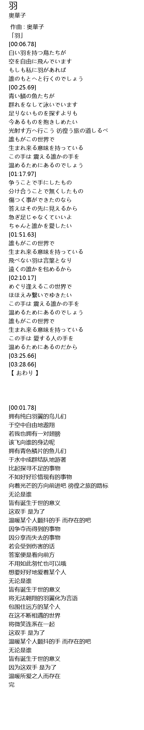 | [00:01.78] | 「羽」 |