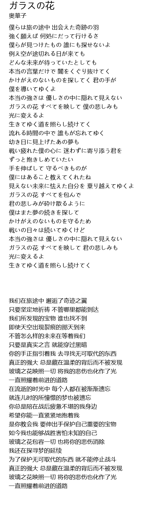 | [02:54.780] | ガラスの花 すべてを包んで 君の悲しみが砕け散るように |