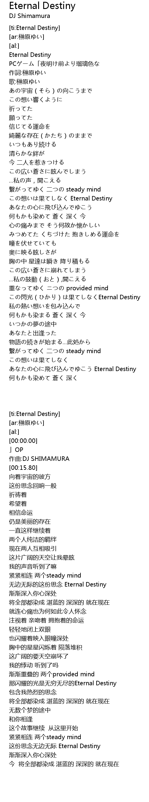 | [00:00.00] | Eternal Destiny |
