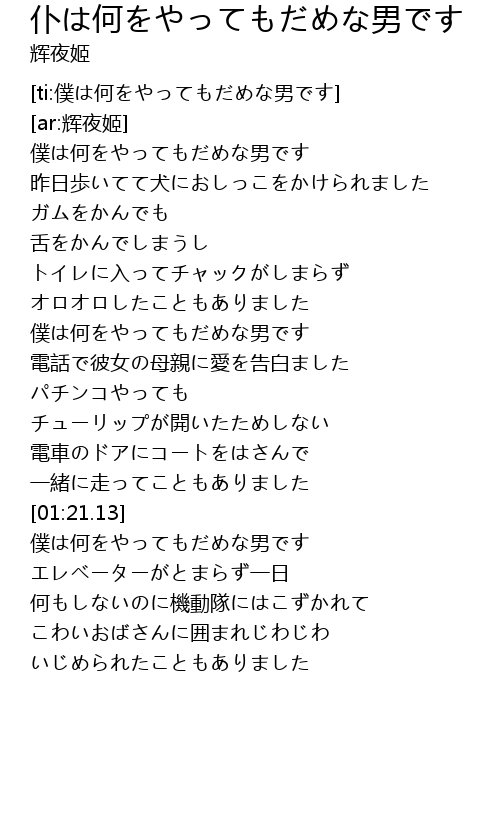 | [00:17.60] | 僕は何をやってもだめな男です |