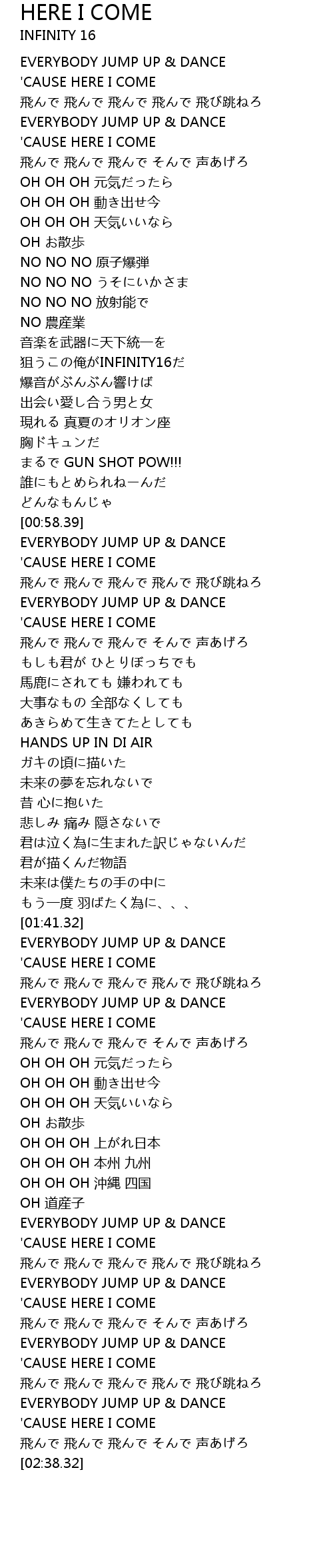 | [00:15.93] | EVERYBODY JUMP UP & DANCE |