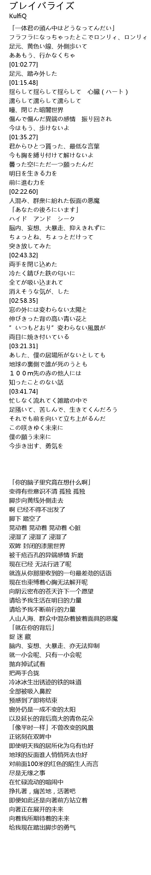 | [02:33.19] | 脳内、妄想、大暴走、抑えきれずに |