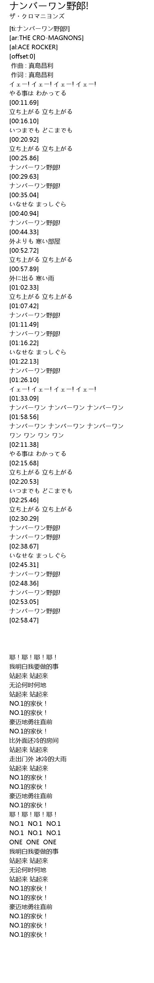 | [02:00.15] | ナンバーワン ナンバーワン ナンバーワン |