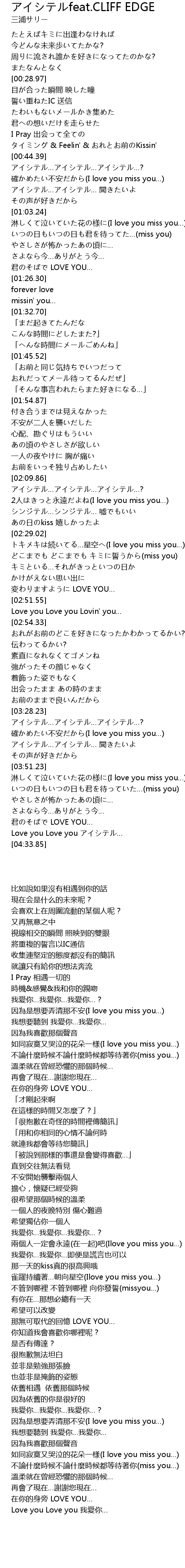 | [02:34.10] | どこまでも どこまでも キミに誓うから(miss you) |