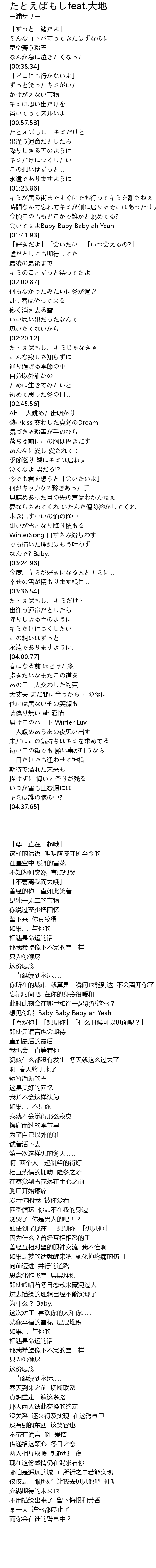 | [03:16.00] | 想いが雪となり降り積もる |