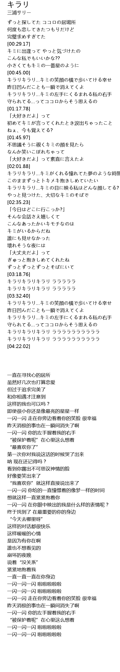 キラリキラリ…キミがくれる憧れてた夢のような時間 |