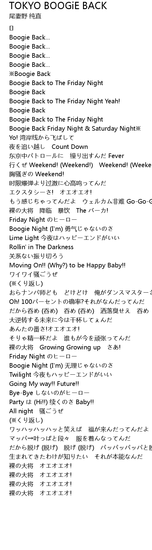 | Song | TOKYO BOOGiE BACK |