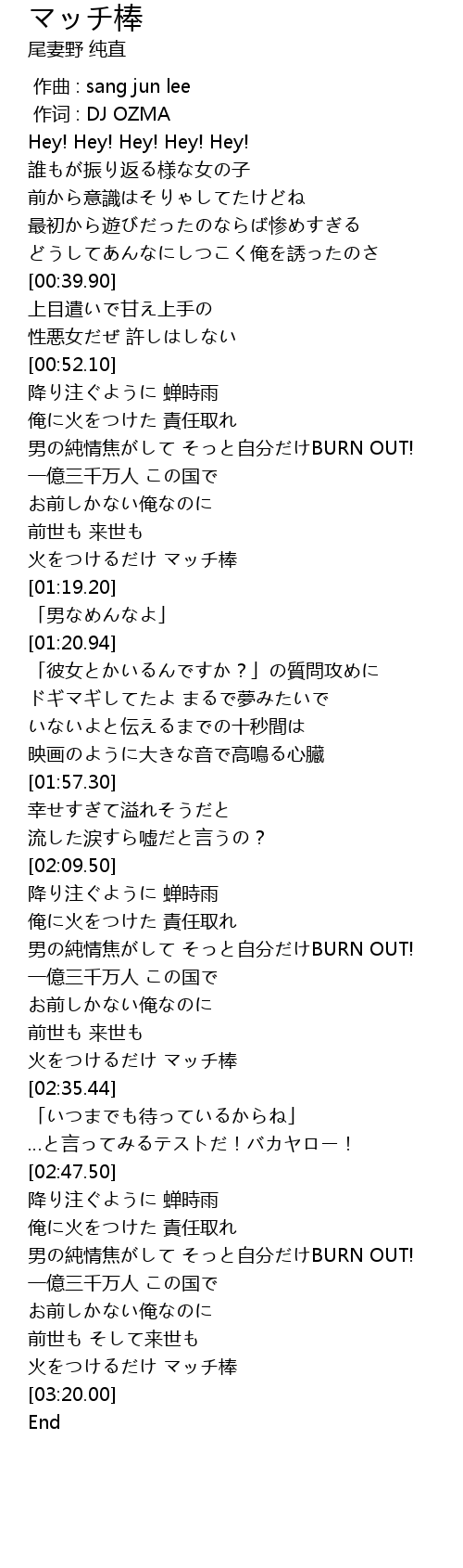 | [02:32.44] | 火をつけるだけ マッチ棒 |