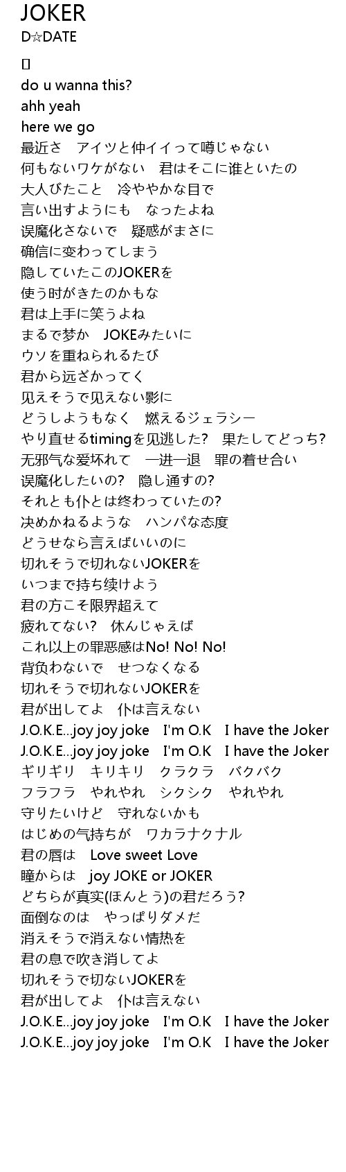 | J. O. K. E... joy joy joke I' m O. K I have the Joker | |